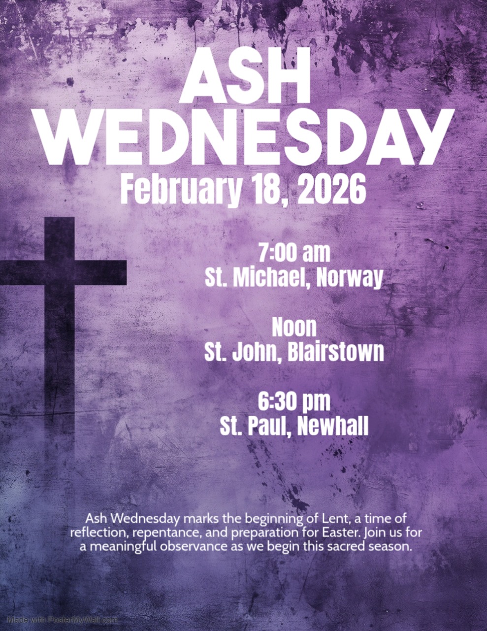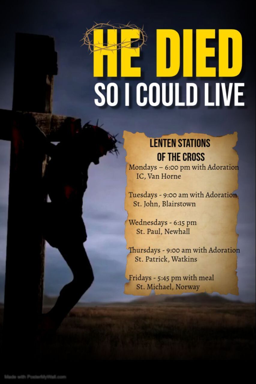 The cluster consists of five parishes in Benton County, Iowa: Immaculate Conception, Van Horne, IA; St. John, Blairstown, IA; St. Michael, Norway, IA; St. Patrick, Watkins, IA; and St. Paul, Newhall, IA. They have had a history since 1986.